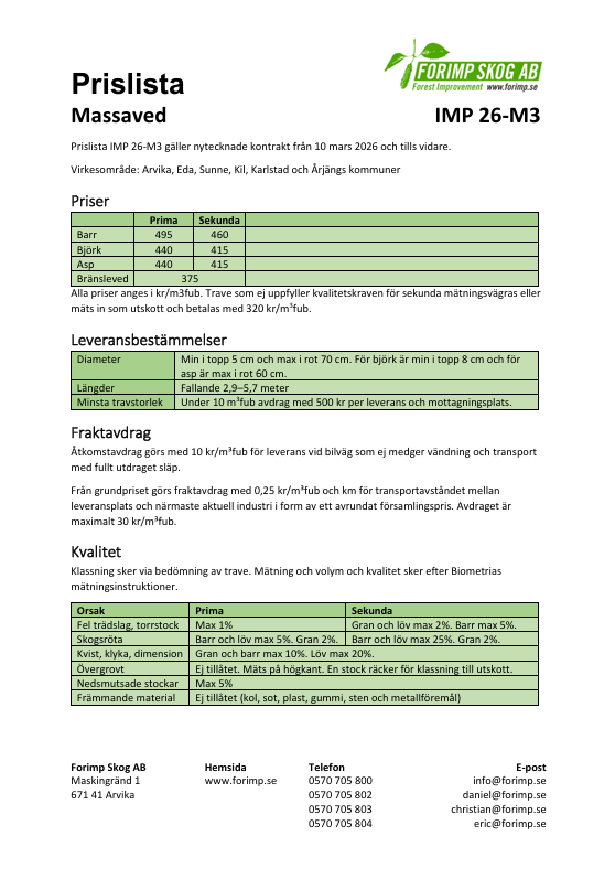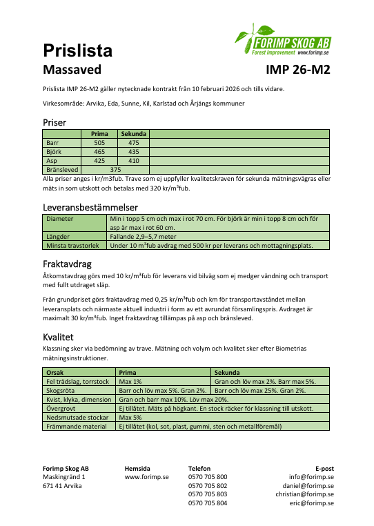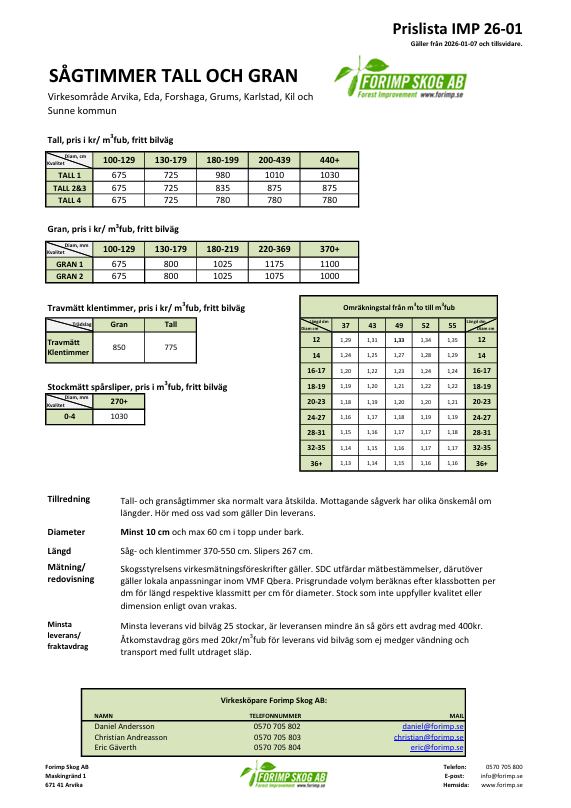 Ytterligare målsättning är att skapa högsta möjliga avkastning till er skogsägare, detta genom att jobba för att kunna erbjuda starka konkurrensmässiga virkespriser samt genom att vara prisvärda på skogsvårdstjänster och produkter.